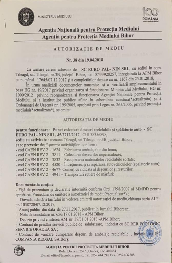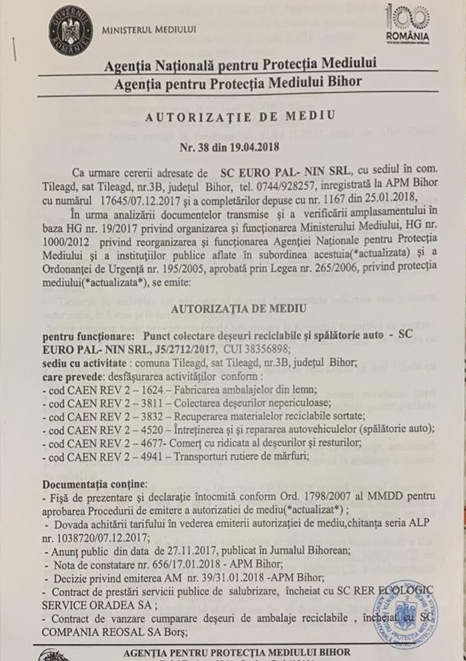 Pentru aceasta activitate detinem Autorizatie de mediu, respectand astfel cerintele legate de protectia mediului si a sănătătii umane.